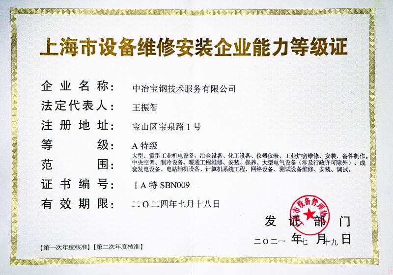 ÉϺ£ÊÐ×°±¸Î¬ÐÞ×°ÖÃÆóÒµÄÜÁ¦Æ·¼¶Ö¤£¨AÌØ¼¶£©